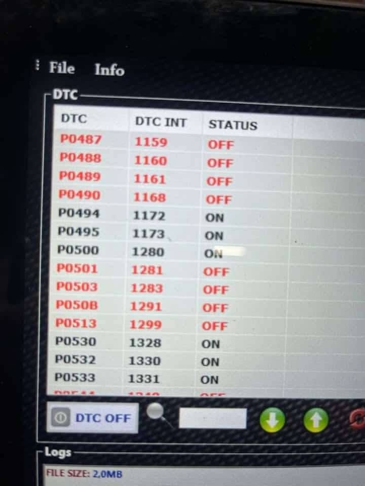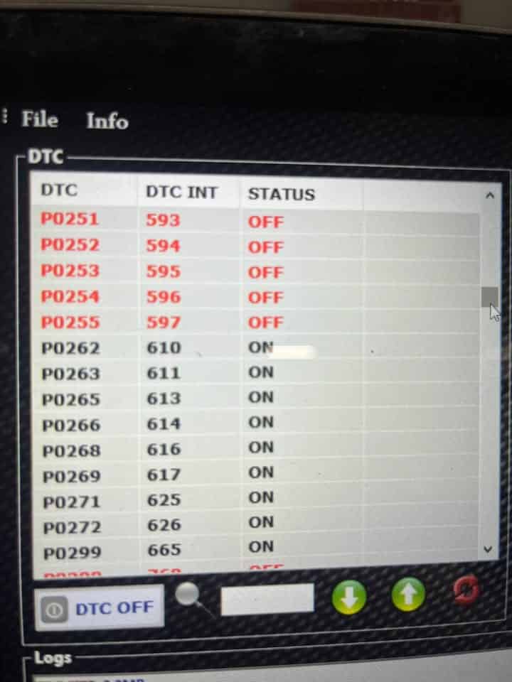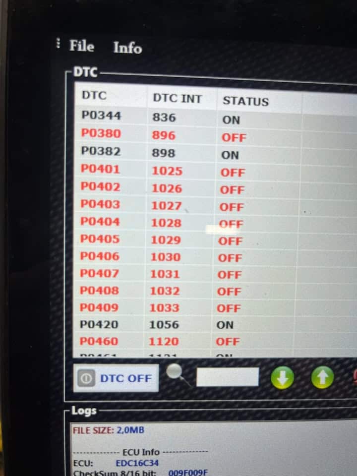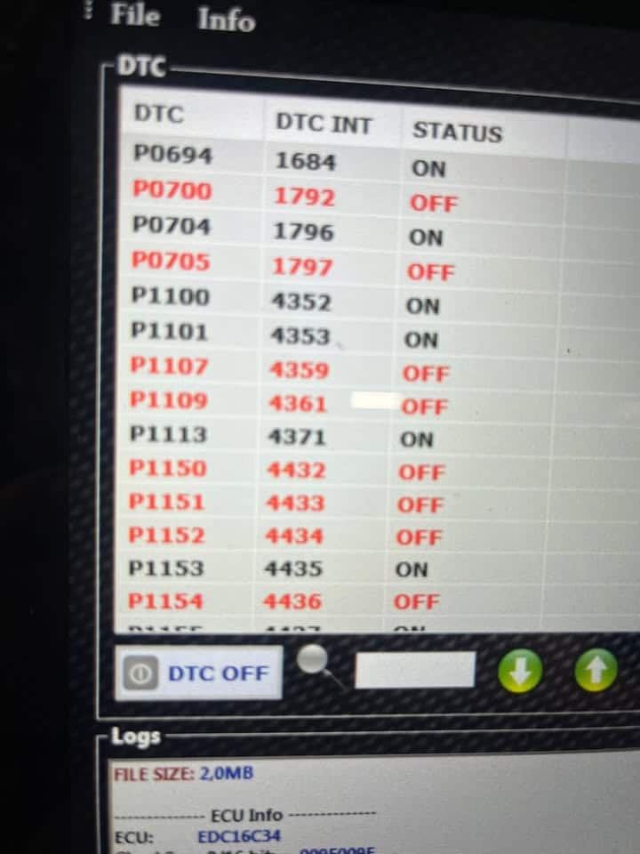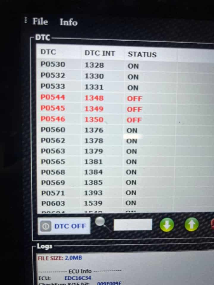 Bonsoir, dans le milieu de la reprogrammation il nous arrive de voir des choses bizard parfois, on a déjà eu vu des DTC off sur des pompes à eau électrique ou même des capteurs de vilebrequin, alors nous derrière on se creuse la tête pour comprendre pourquoi l auto est en panne , mais ce coup si je pense qu on peut la mettre en haut du tableau loin devant les autres ! 85 DTC off sur un edc16c34!! Incroyable!! dans le milieu du chips Tunning un dtc off c est une erreur qui ne peux plus remonter en cas de défaillance du système à la valise de diagnostique, la voiture est donc en panne sans remonter d erreurs ! Bonne soirée à tous